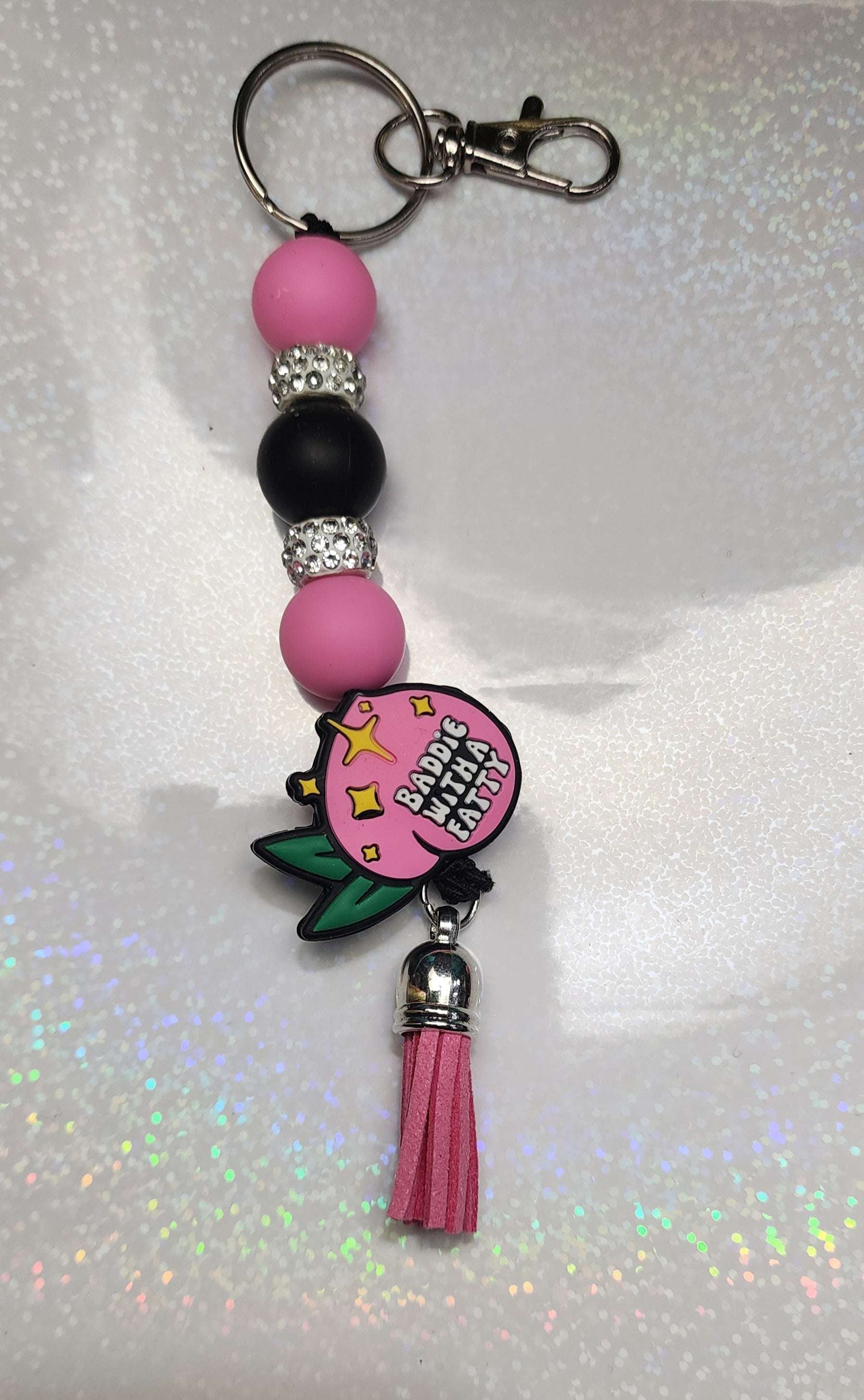 🍑 Baddie with a Fatty Peach Keychain 🍑 Show off that peachy personality everywhere you go! This handmade beaded keychain is the ultimate bag charm for anyone who’s proud to be a little cheeky. Whether it’s hanging from your keys, purse, or backpack, this bold accessory screams confidence, sass, and a whole lot of booty energy. Perfect for besties who love a good laugh or anyone who deserves a daily reminder they’re that baddie.