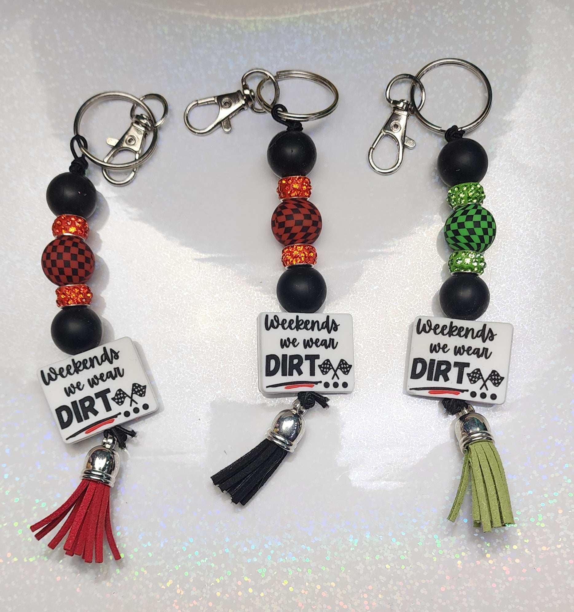 Dirt Race Track Beaded Keychain – Weekends Are for Dirt, Handmade Racing Lover Gift – Sassy Bag Charm