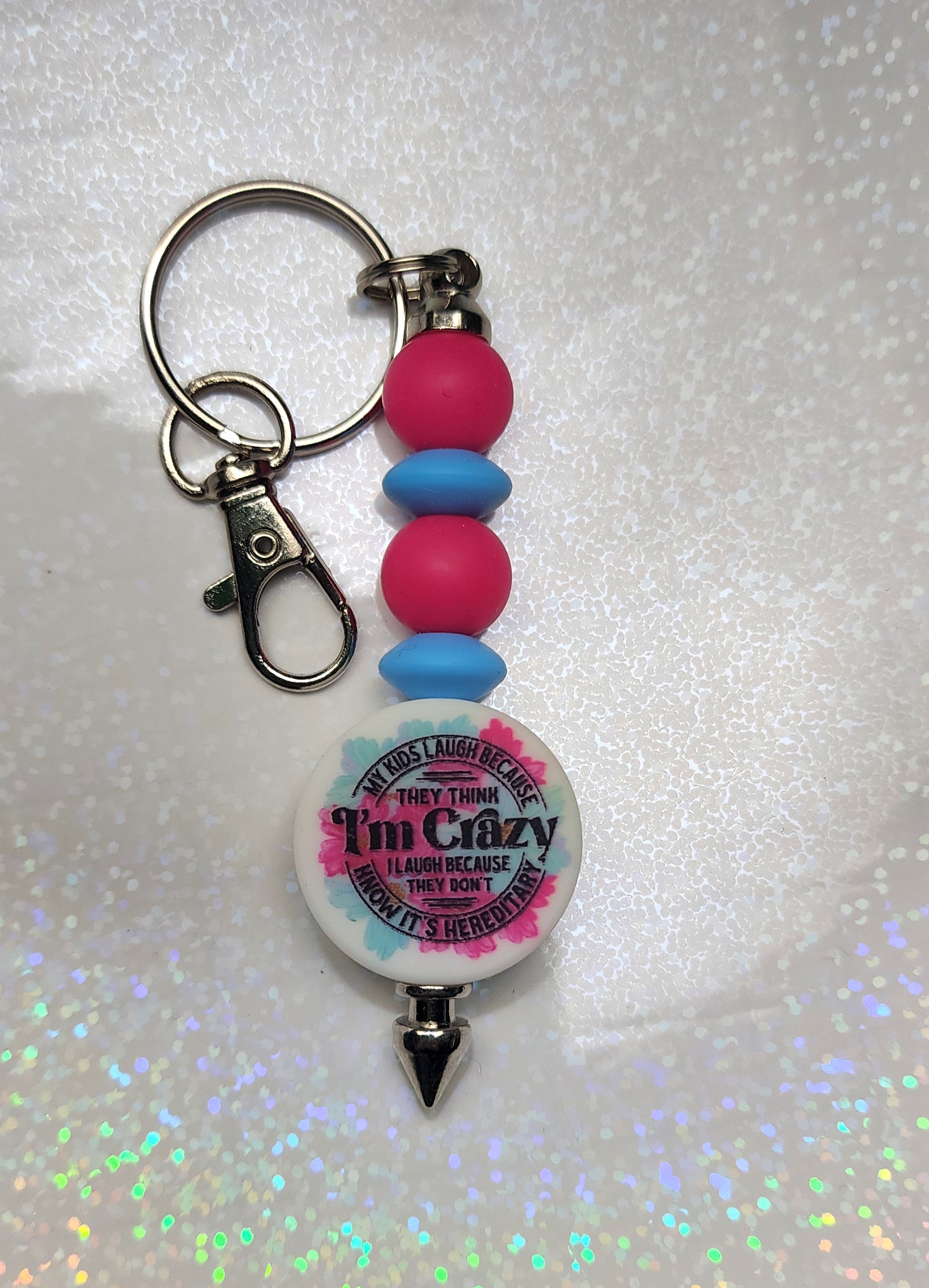 Handmade “My Kids Laugh Because They Think I’m Crazy” Beaded Keychain – Funny Mom Quote Keyring, Gift for Parents