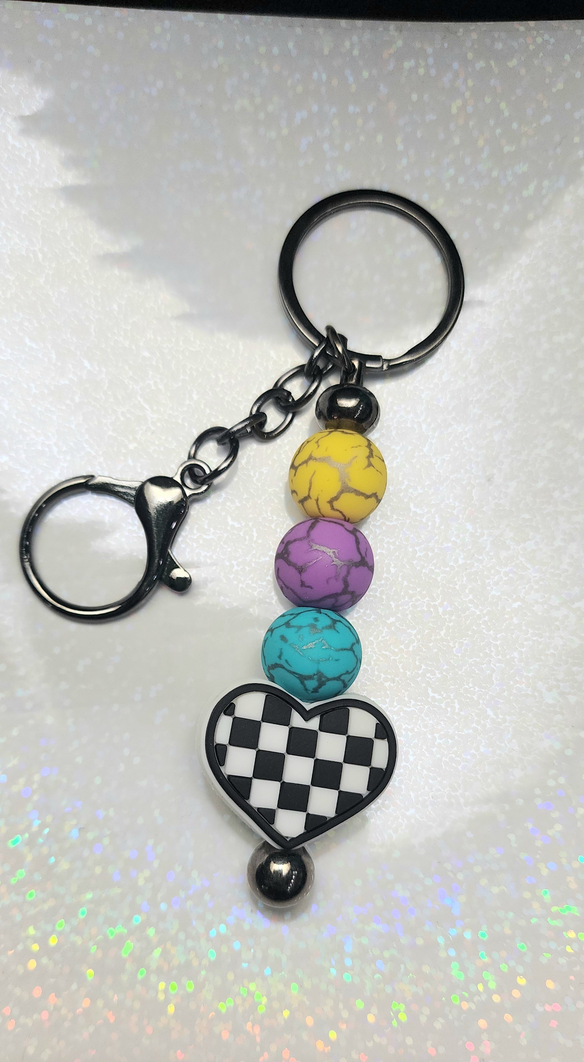 Handmade Checkered Heart Keychain: Multicolor Beaded Charm