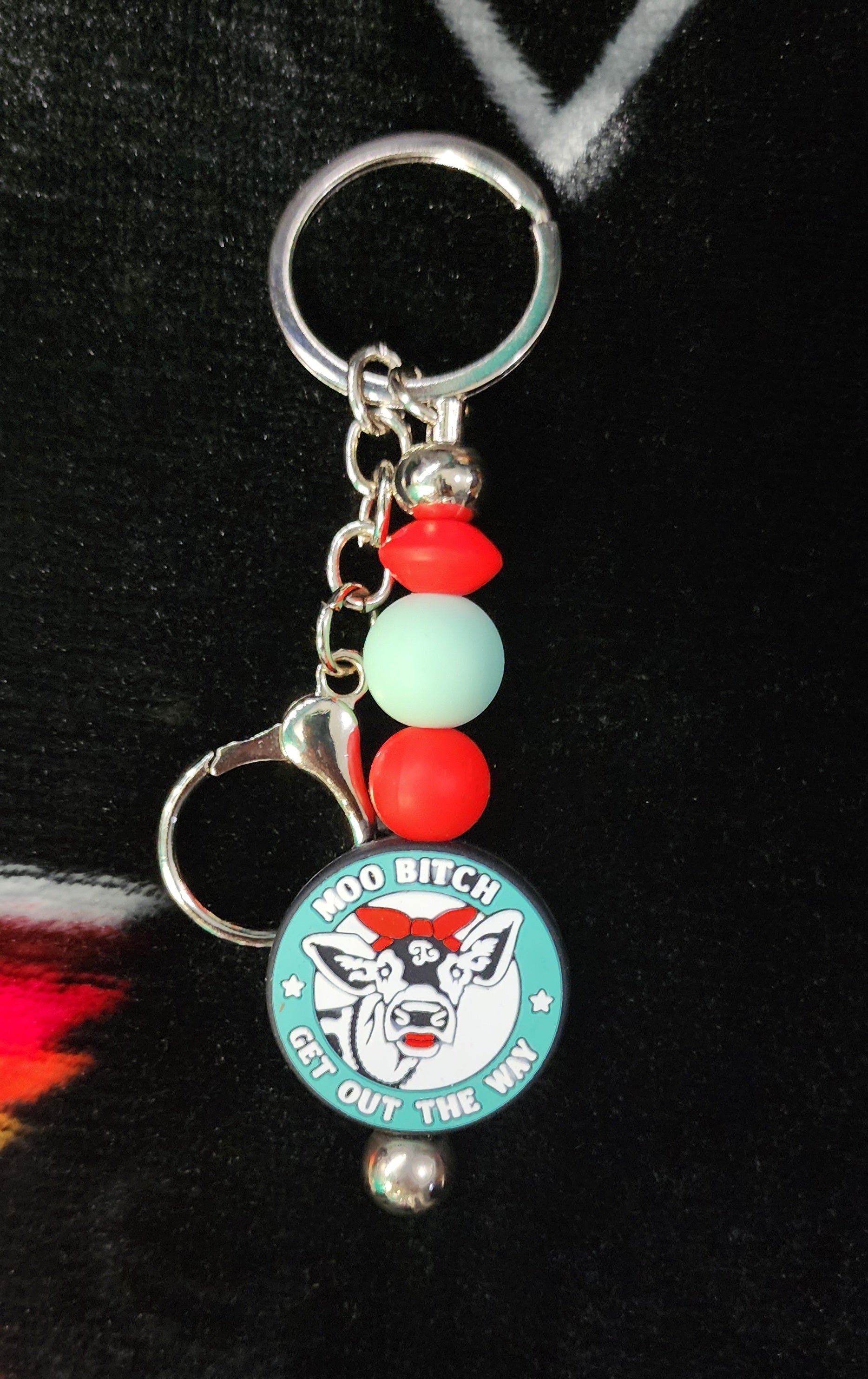 Handmade Cow Keychain – “Moo B**** Get Out The Way” Funny Farm Animal Keychain