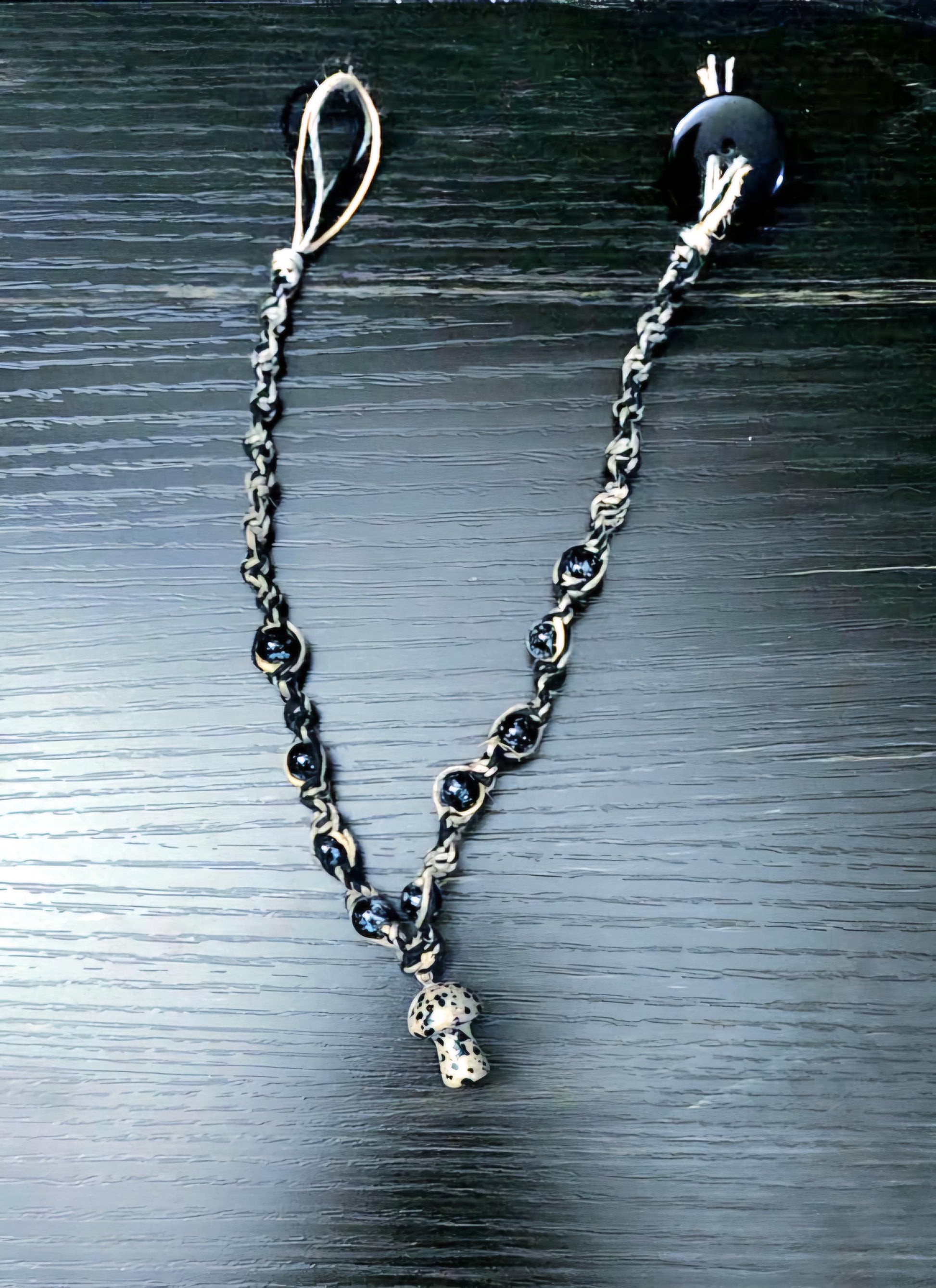Get ready to turn heads with this handmade hemp necklace featuring earthy tan and black cords woven together with a unique brown and black stone mushroom bead. This boho jewelry piece is perfect for nature lovers who want to showcase their free spirit and eco-friendly vibe. Unlike mass-produced accessories, this necklace brings genuine handcrafted charm and sustainable style right to your neckline.