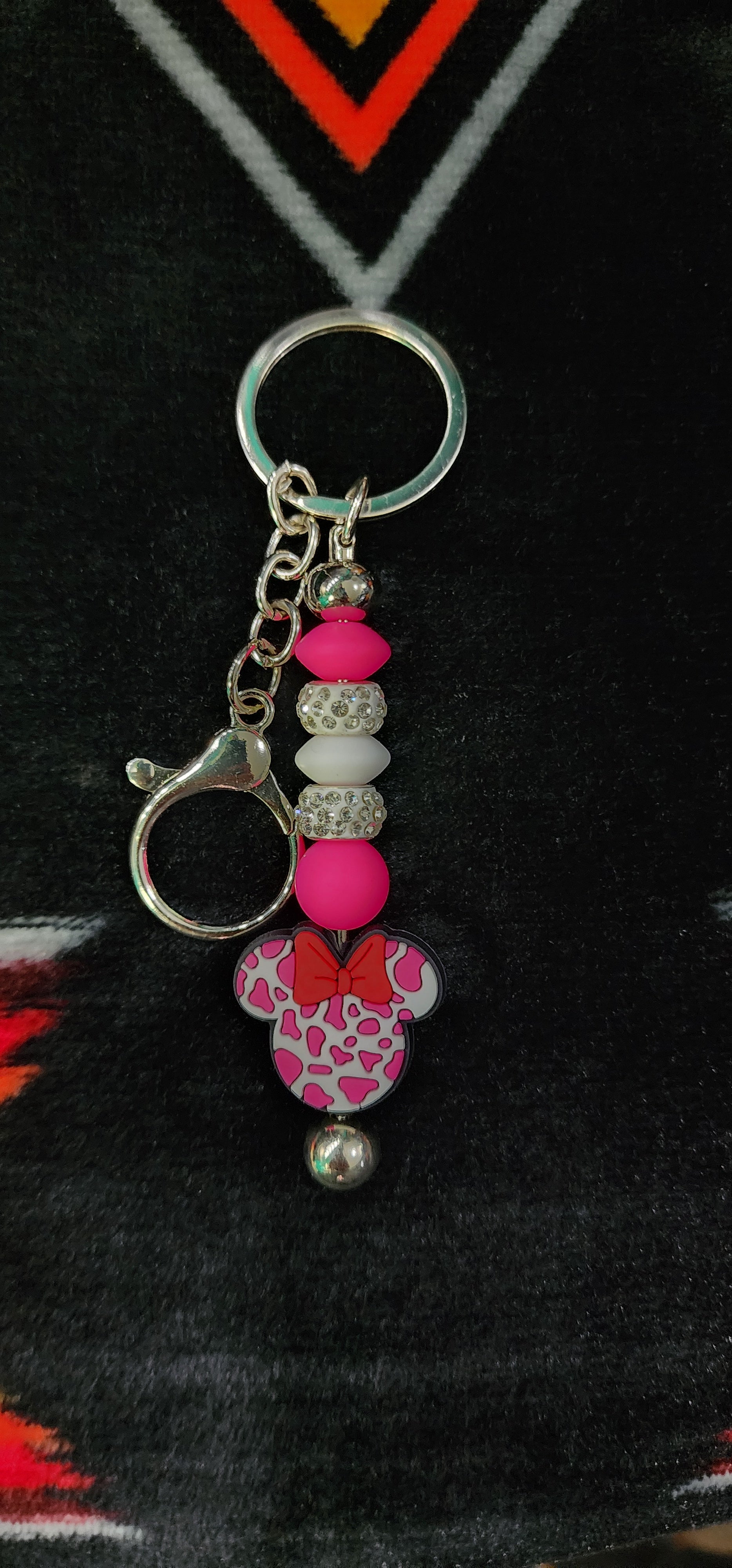 Handmade Minnie Mouse cow print keychain