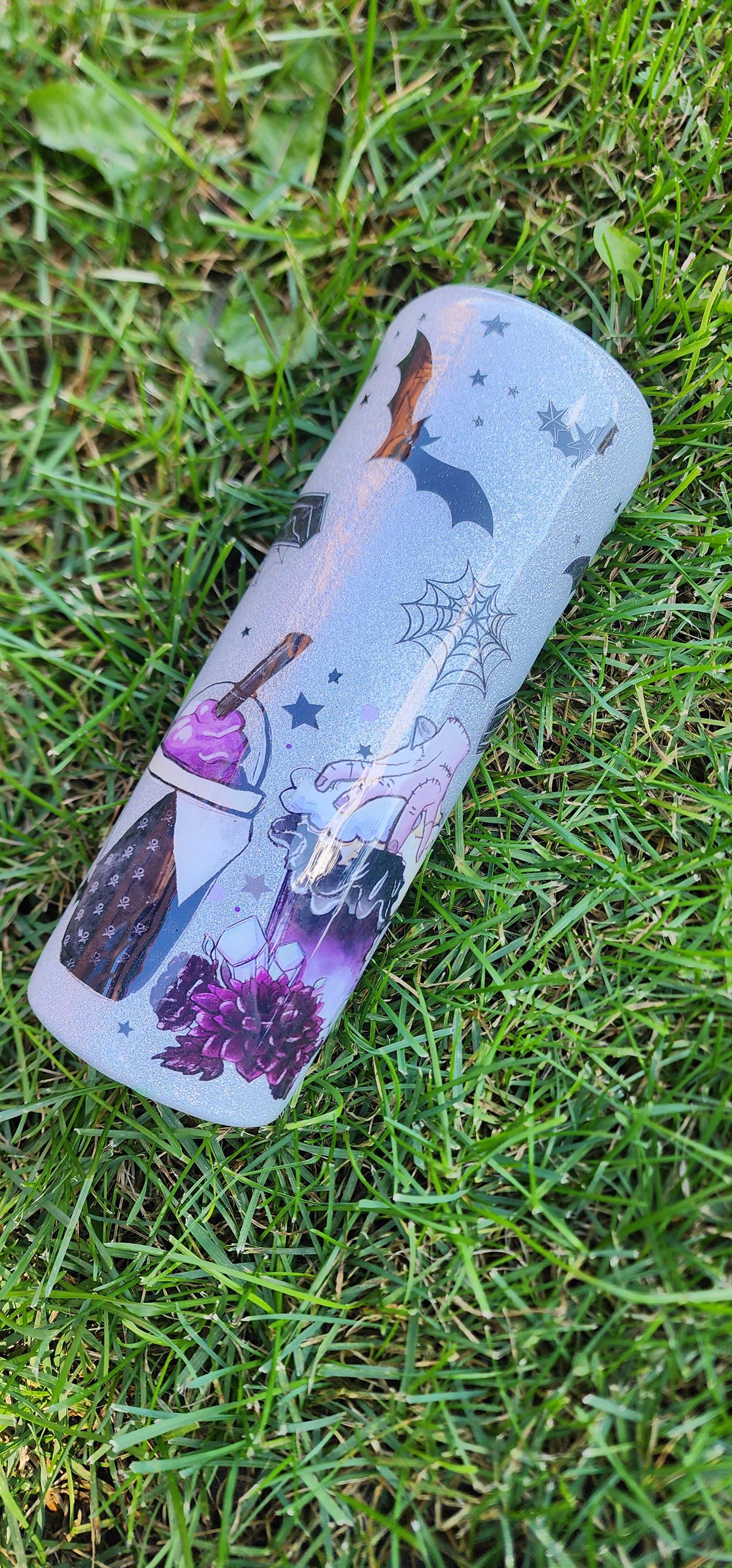 This Wednesday Addams-inspired 20oz epoxy tumbler is 100% goth vibes 🖤✨—glittery, edgy, and totally sassy. Perfect for:
