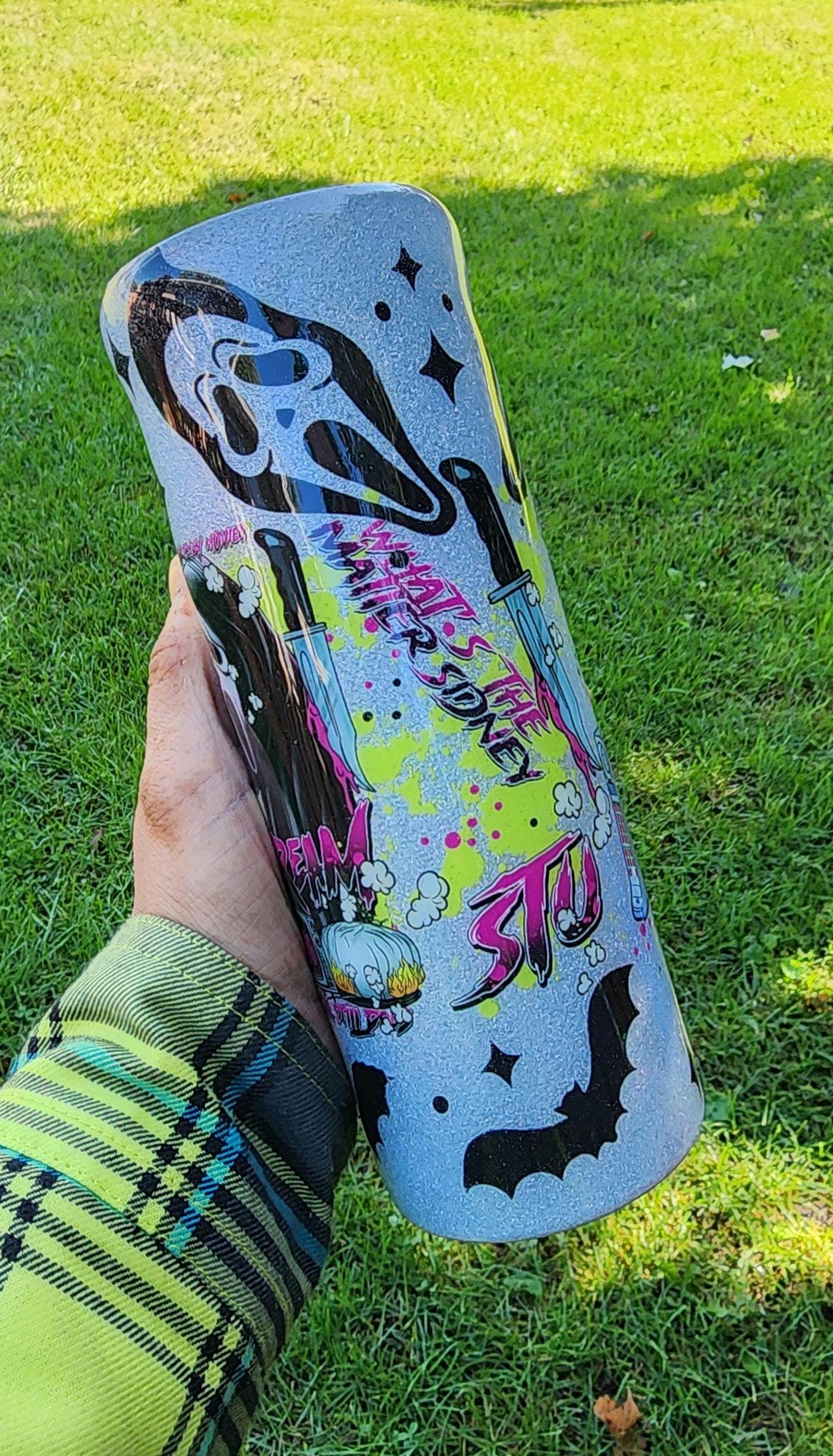 What’s the Matter, Sydney? Ghost Face Horror Movie 20oz Epoxy Tumbler | Scream Inspired Glitter Cup | Scary Movie Fan Gift