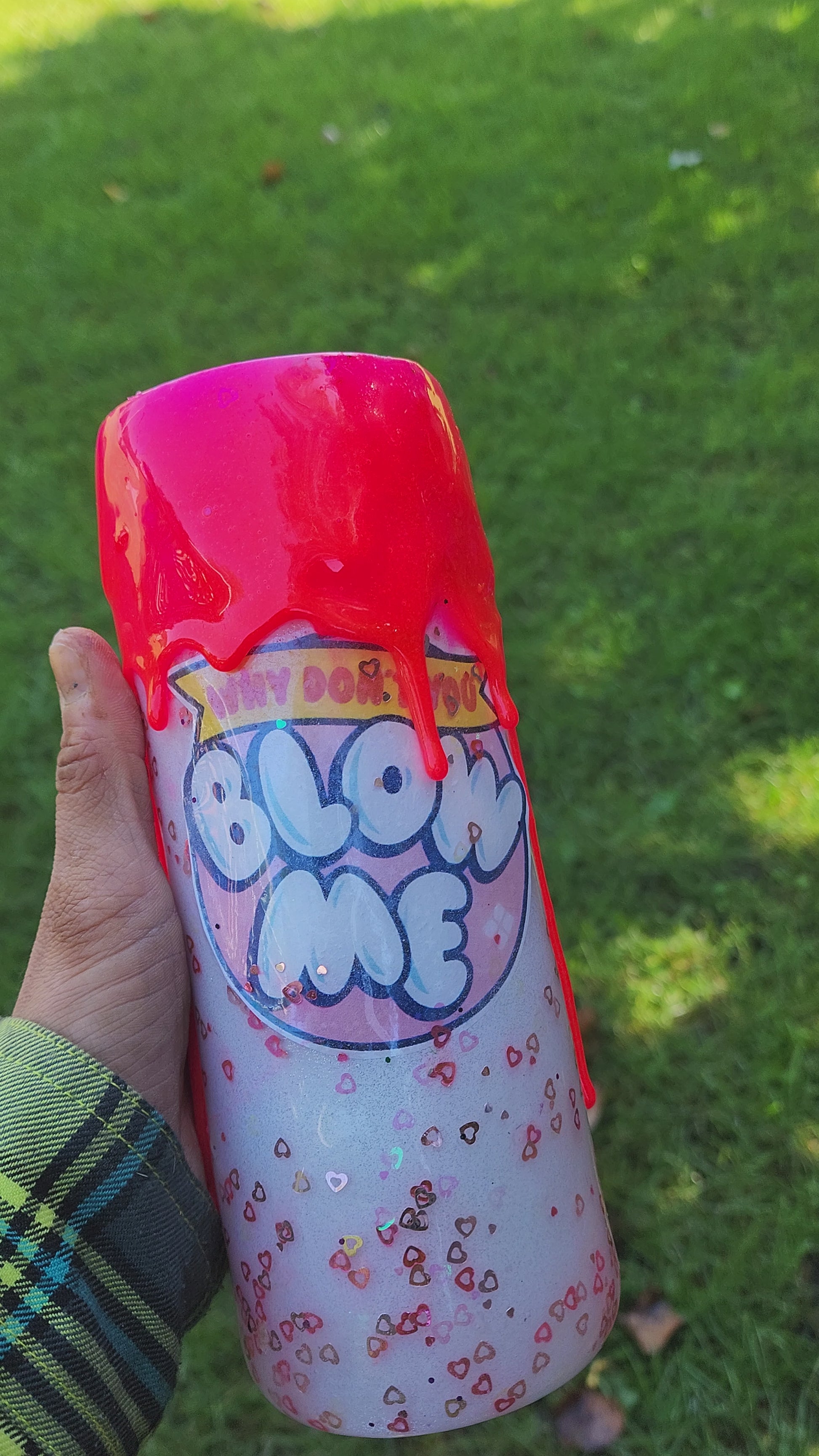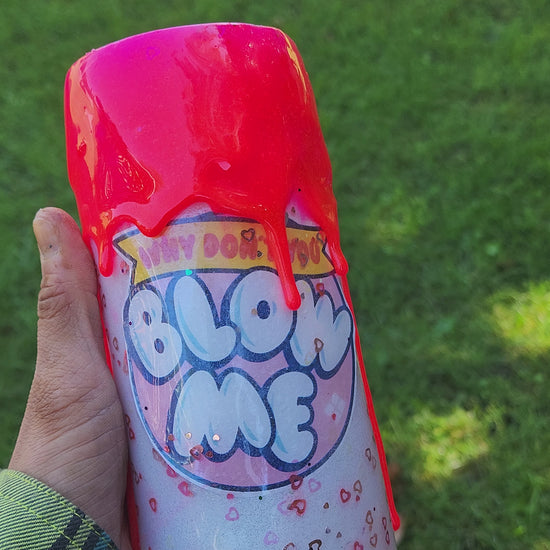 Spice up your sips with this “Why Don’t You Blow Me” Bubble Gum Wrapper Epoxy Tumbler – the hot pink glitter drip cup that’s serving sass, sparkle, and just the right amount of attitude. Perfect for anyone who loves bold drinkware, this funny adult humor tumbler makes an unforgettable gift for besties, coworkers, or anyone who appreciates a cheeky laugh with their caffeine fix.